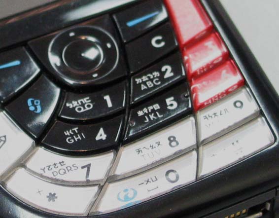 Detail of the keypad on my coworker's cell phone; I took the picture myself with my camera, original file IMG_5063.jpg