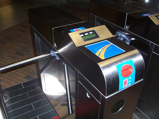 English: New turnstiles with OPUS reader at Bonaventure Metro Station in Montreal