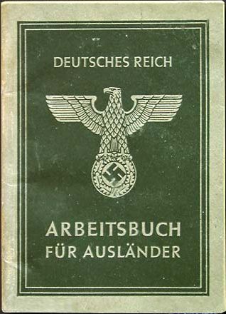English: Arbeitsbuch für Ausländer (Employment Record Book for the foreigners). Front cover. German Reich, 1938–1945