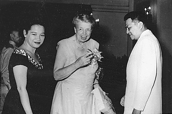 English: Eleanor Roosevelt with President Ramon Magsaysay and Mrs. Luz Magsaysay of the Philippines in Manila
