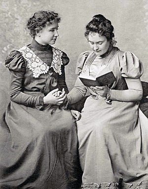 English: Helen Keller and Anne Sullivan in 1898. On the left Helen Keller and on the right Anne Sullivan.