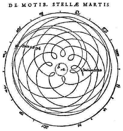 Johannes Kepler's depiction of the geocentric motions of Mars, from Astronomia Nova (1609).