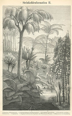 The Carboniferous is a geologic period and system that extends from the end of the Devonian Period, about 359.2 to 299 million years ago , to the beginning of the Permian Period, about 299.0 ± 0.8 Ma ( ICS, 2004). The name Carboniferous means "coal-bearing" and derives from the Latin words carbo (coal) and ferre (to carry), and was coined by geologists William Conybeare and William Phillips in 1822. Based on a study of the British rock succession, it was the first of the modern 'system' names to be employed, and reflects the fact that many coal beds were formed globally during this time. The Carboniferous is often treated in North America as two geological periods, the earlier Mississippian and the later Pennsylvanian.