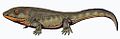 Carboniferous amphibians were diverse and common by the middle of the period, more so than they are today; some were as long as 6 meters, and those fully terrestrial as adults had scaly skin. They included a number of basal tetrapod groups classified in early books under the Labyrinthodontia. These had long bodies, a head covered with bony plates and generally weak or undeveloped limbs. The largest were over 2 meters long. They were accompanied by an assemblage of smaller amphibians included under the Lepospondyli, often only about 15 cm (6 in) long. Some Carboniferous amphibians were aquatic and lived in rivers ( Loxomma, Eogyrinus, Proterogyrinus); others may have been semi-aquatic ( Ophiderpeton, Amphibamus, Hyloplesion) or terrestrial ( Dendrerpeton, Tuditanus, Anthracosaurus).