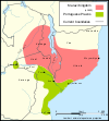 By the 16th century, the manikongo held authority from the Atlantic in the west to the Kwango River in the east. Each territory was assigned a mani-mpembe (provincial governor) by the manikongo. In 1506, Afonso I (1506–1542), a Christian, took over the throne. Slave trading increased with Afonso's wars of conquest. About 1568 to 1569, the Jaga invaded Kongo, laying waste to the kingdom and forcing the manikongo into exile. In 1574, Manikongo Álvaro I was reinstated with the help of Portuguese mercenaries. During the latter part of the 1660s, the Portuguese tried to gain control of Kongo. Manikongo António I (1661–1665), with a Kongolese army of 5,000, was destroyed by an army of Afro-Portuguese at the Battle of Mbwila. The empire dissolved into petty polities, fighting among each other for war captives to sell into slavery.