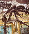The tallest and heaviest dinosaur known from good skeletons is Giraffatitan brancai (previously classified as a species of Brachiosaurus). Its remains were discovered in Tanzania between 1907–12. Bones from several similar-sized individuals were incorporated into the skeleton now mounted and on display at the Museum für Naturkunde Berlin; this mount is 12 meters (39 ft) tall and 22.5 meters (74 ft) long, and would have belonged to an animal that weighed between 30000 and 60000 kilograms (70000 and 130000 lb). The longest complete dinosaur is the 27-meter (89 ft) long Diplodocus, which was discovered in Wyoming in the United States and displayed in Pittsburgh's Carnegie Natural History Museum in 1907.