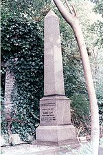 The possibility of burial in Westminster Abbey being rejected due to her denial of Christian faith and "irregular" though monogamous life with Lewes, she was buried in Highgate Cemetery (East), Highgate, London in the area reserved for religious dissenters, next to George Henry Lewes. In 1980, on the centenary of her death, a memorial stone was established for her in the Poets’ Corner. Several key buildings in her birthplace of Nuneaton are named after her or titles of her novels. For example George Eliot Hospital, George Eliot Community School and Middlemarch Junior School.