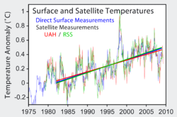 - "New analyses of balloon-borne and satellite measurements of lower- and mid-tropospheric temperature show warming rates that are similar to those of the surface temperature record and are consistent within their respective uncertainties, largely reconciling a discrepancy noted in the TAR."