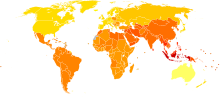 In 2000, the World Health Organization found the prevalence and incidence of schizophrenia to be roughly similar around the world, with age-standardized prevalence per 100,000 ranging from 343 in Africa to 544 in Japan and Oceania for men and from 378 in Africa to 527 in Southeastern Europe for women.
