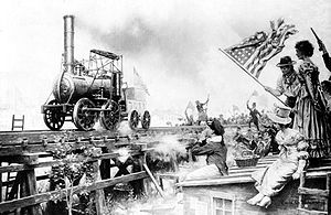The Stourbridge Lion's first run, as depicted by Clyde Osmer DeLand c. 1916