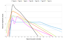 - a. ^ Faint types may be a distinct sub-class. Bright types may be a continuum from slightly over-luminous to hypernovae.