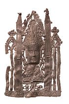 The saint's fame quickly spread throughout the Norman world. The first holy image of Becket is thought to be a mosaic icon still visible in Monreale Cathedral, in Sicily, created shortly after his death. Becket's cousins obtained refuge at the Sicilian court during his exile, and King William II of Sicily wed a daughter of Henry II. The principal church of the Sicilian city of Marsala is dedicated to St. Thomas Becket. Over forty-five medieval chasse reliquaries decorated in champlevé enamel showing similar scenes from Becket's life survive, including the Becket Casket in London ( V&A Museum). He is commemorated by a statue in niche 196 of the west front of Salisbury Cathedral.