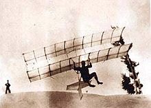 Chanute's hang glider of 1896. The pilot may be Augustus Herring.
