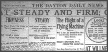In years to come Dayton newspapers would proudly celebrate the hometown Wright brothers as national heroes, but the local reporters somehow missed one of the most important stories in history as it was happening a few miles from their doorstep. James M. Cox, publisher at that time of the Dayton Daily News (later governor of Ohio and Democratic presidential nominee in 1920), expressed the attitude of newspapermen—and the public—in those days when he admitted years later, "Frankly, none of us believed it."