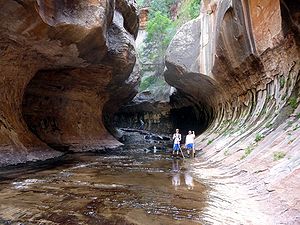 Hiking up into The Narrows (Zion National Park) from the Temple of Sinawava is popular in summer. However, hiking beyond Big Springs requires a permit. The entire Narrows from Chamberlain’s Ranch is a 16-mile one way trip that typically takes 12 hours of strenuous hiking. A shorter alternative is to enter the Narrows via Orderville Canyon. Both Orderville and the full Narrows require a back country permit. Entrance to the Parunuweap Canyon section of the park downstream of Labyrinth Falls is prohibited. Other often-used backcountry trails include the West Rim and LaVerkin Creek.